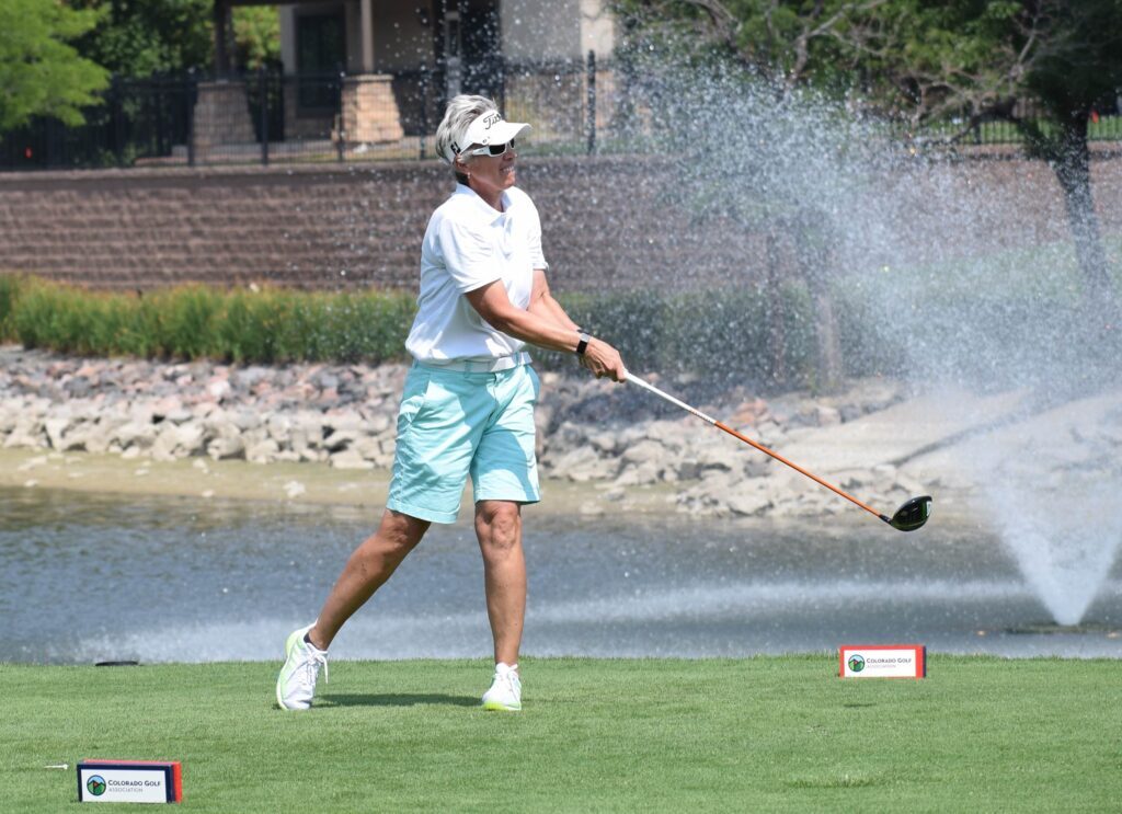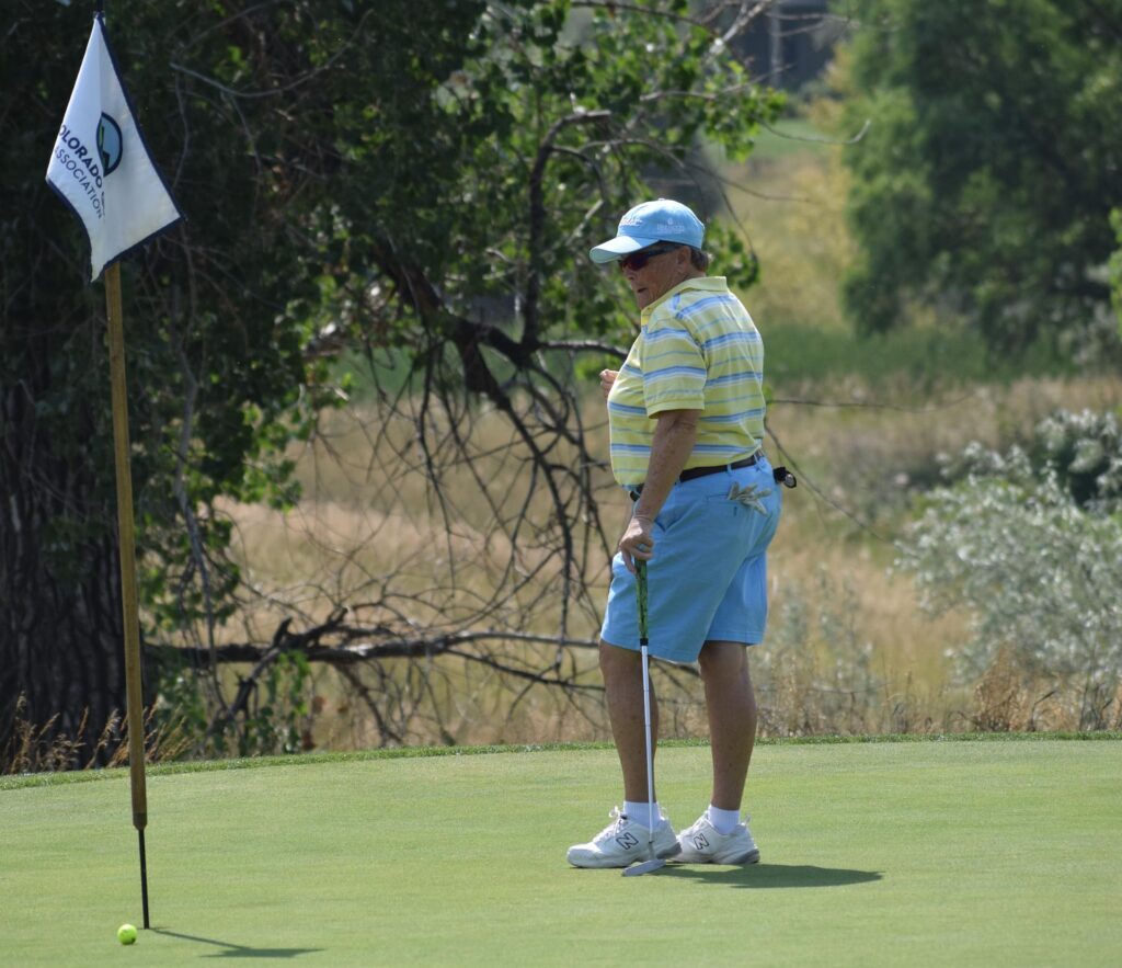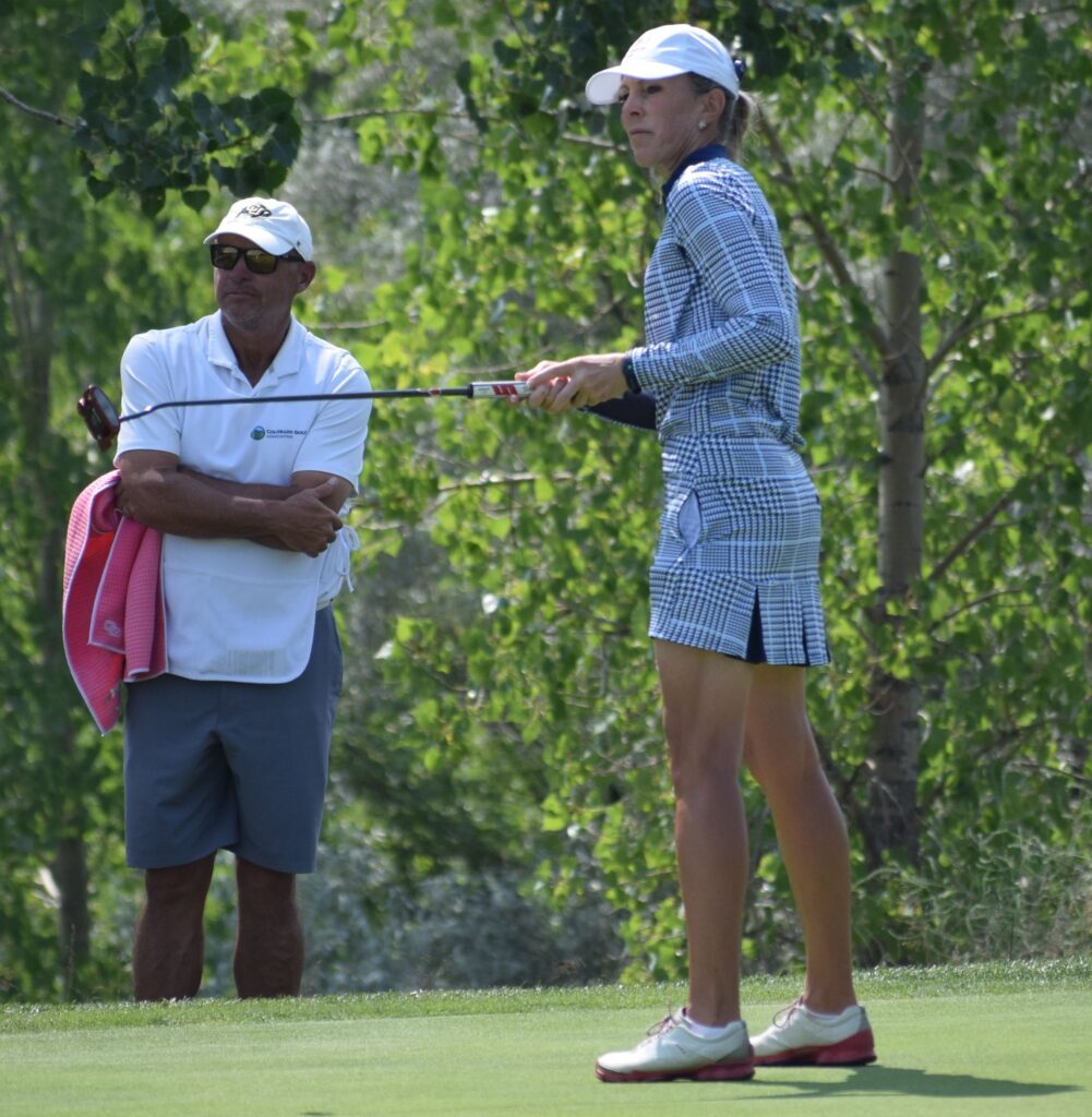 However, 10 and 11 proved very costly for Eaton, who is tied with fellow Colorado Golf Hall of Famer Carol Flenniken with 25 career CWGA/CGA women’s titles. A tee shot left into the trees on 10 led to Eaton needing to get up and down for a bogey, which left her three back of Franklin. But her second shot on the par-4 11th proved far more penal.