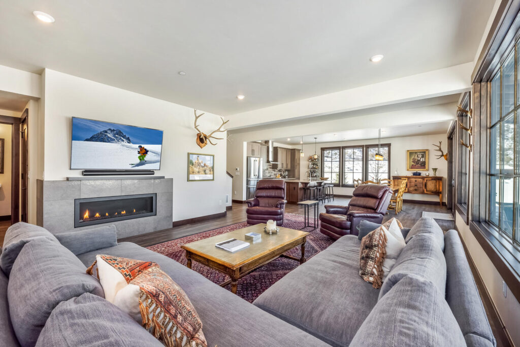This open concept home has two patios with access from the dining and great room, in addition to the main level primary suite with fireplace.
