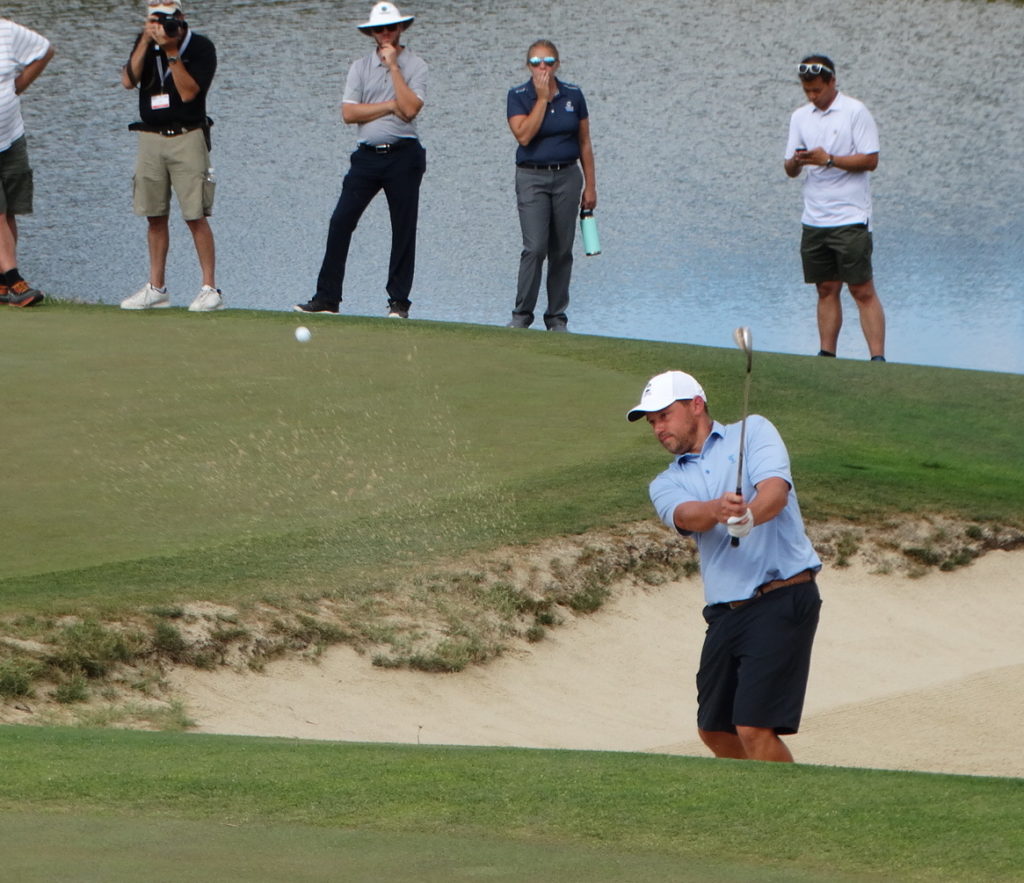 On the par-5 16th, Michel made his third straight birdie, two-putting from the back edge — 42 feet from the cup — after hitting a 6-iron in for his second shot. After being in another bunker, Deraney missed his 13-foot birdie attempt, leaving Michel with a 2-up lead.