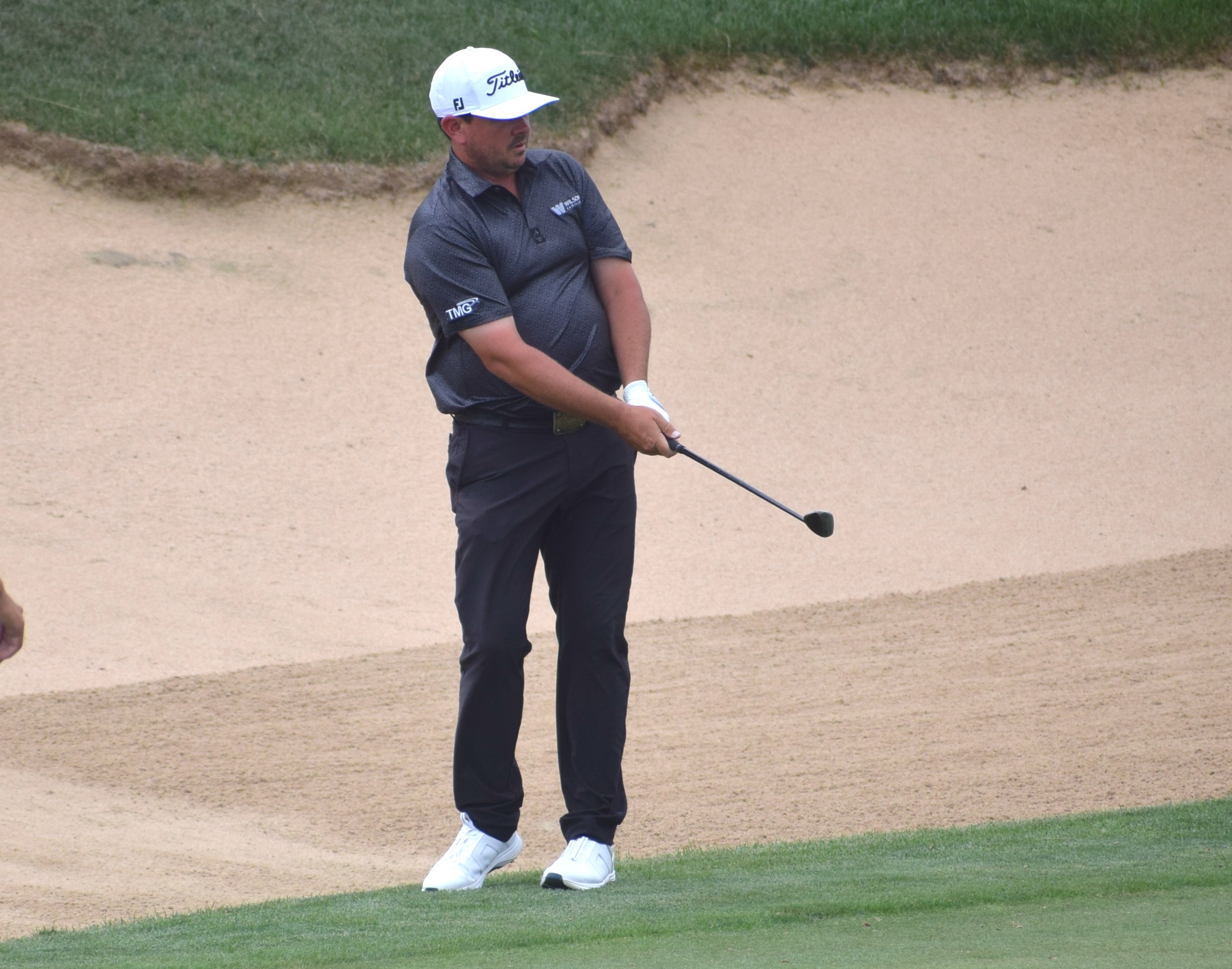 “I felt like I played solid for not really hitting it that well,” he said. “Everything was just average — ball striking, chipping, putting. I shot 2 under on the front, which I felt was solid. But that final weather delay, coming back out the wind was brutal, so finishing at 1 under is not too bad given the weather.”