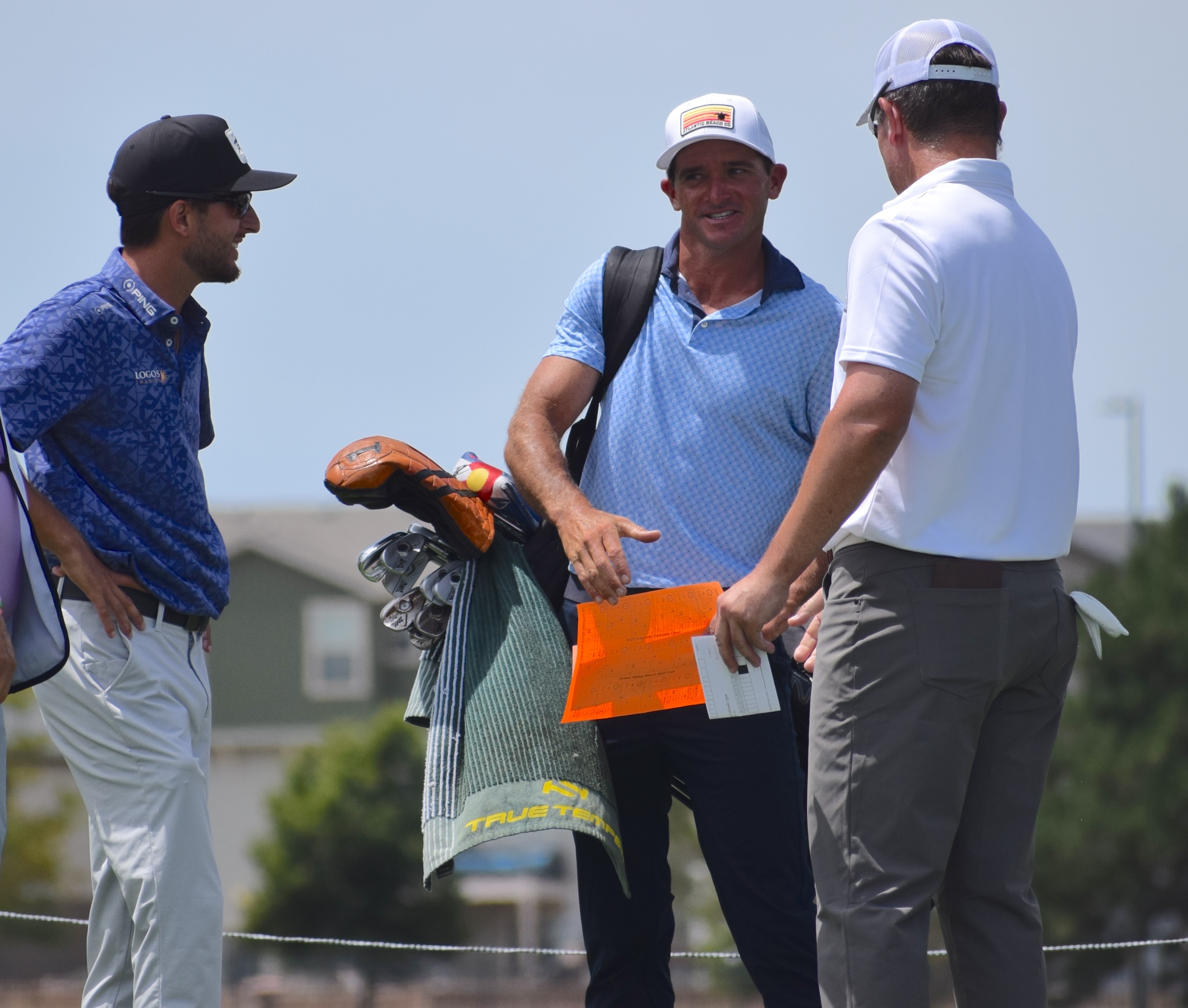 Defending champion Davis Bryant (left) teed it up Thursday with former PGA Tour veteran Sam Saunders of Fort Collins (center) and former European Tour player Matt Zions (right).