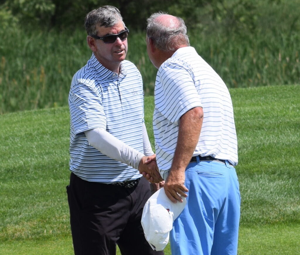 “It feels great. My wife (fellow Colorado Golf Hall of Famer Janet Moore) won (a CGA championship) four times in a row back in the ‘90s,” he said, referring to the CGA Women’s Stroke Play from 1994 through ’97. “So I’m still one behind here. If I can win four in a row I can say we’ve both won four in a row. It’s my incentive for staying in shape for next year,” he said with a smile.