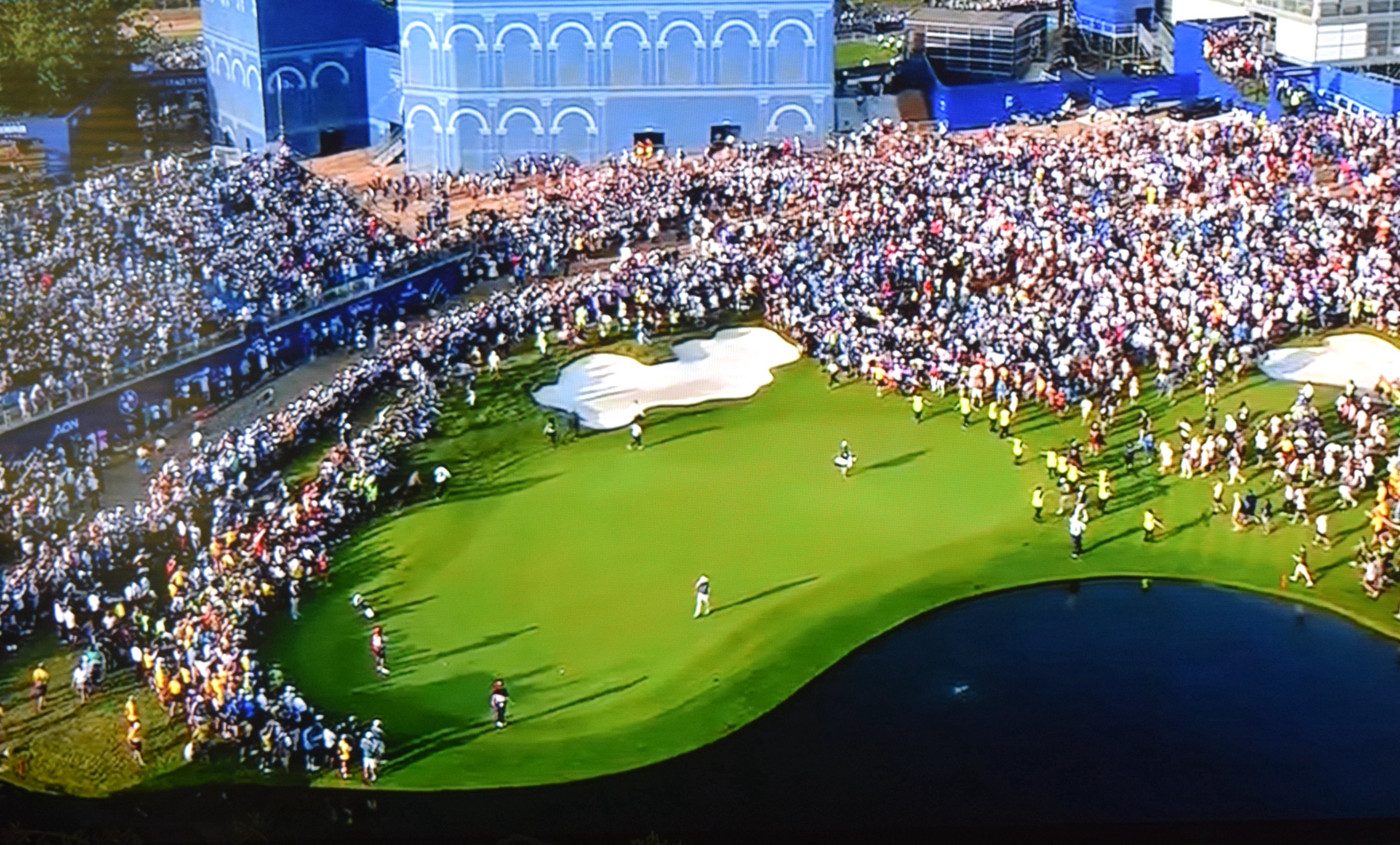 The fans surround the 18th green coming down the stretch on Sunday.