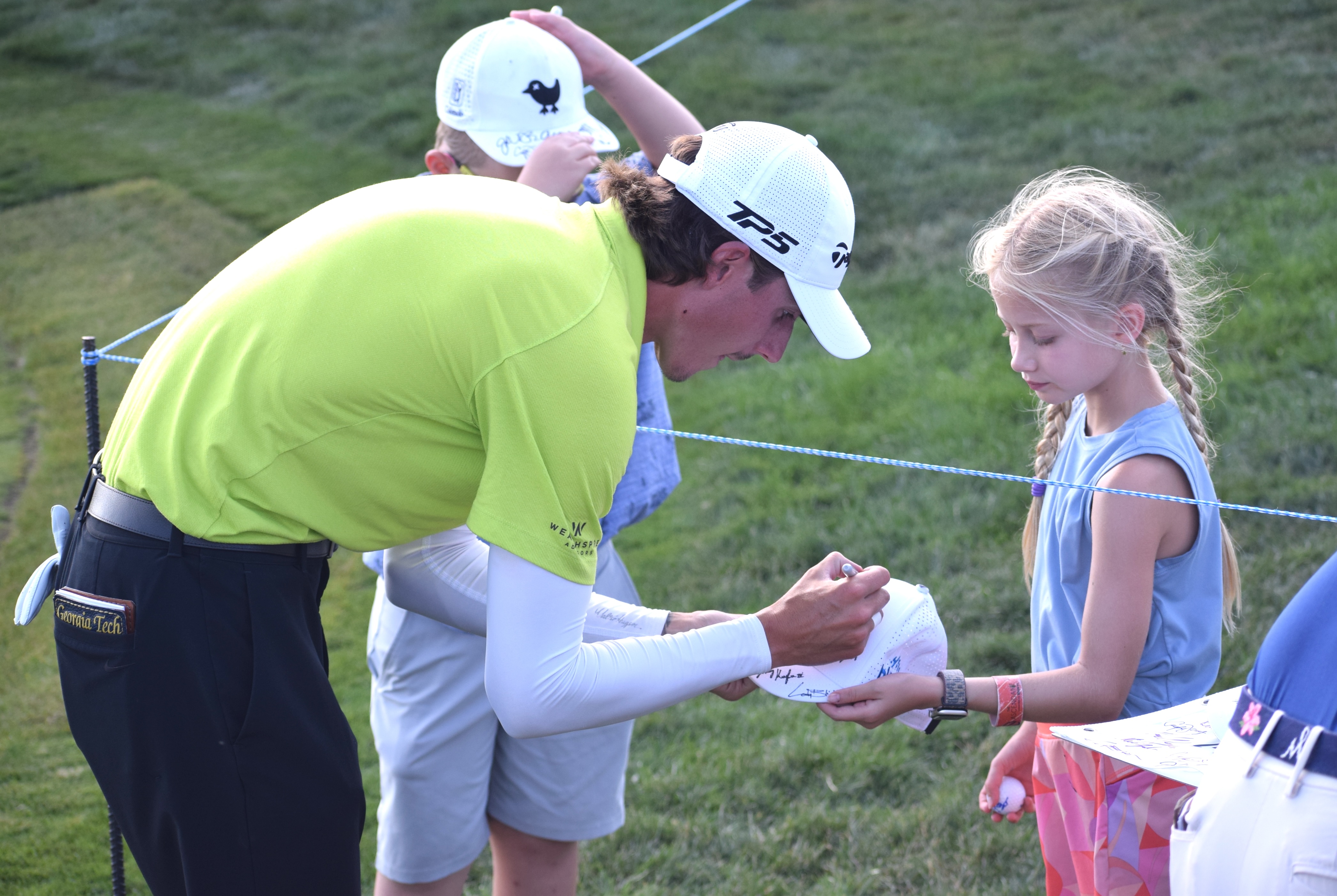 Steelman signs an autograph for a young fan on Saturday.