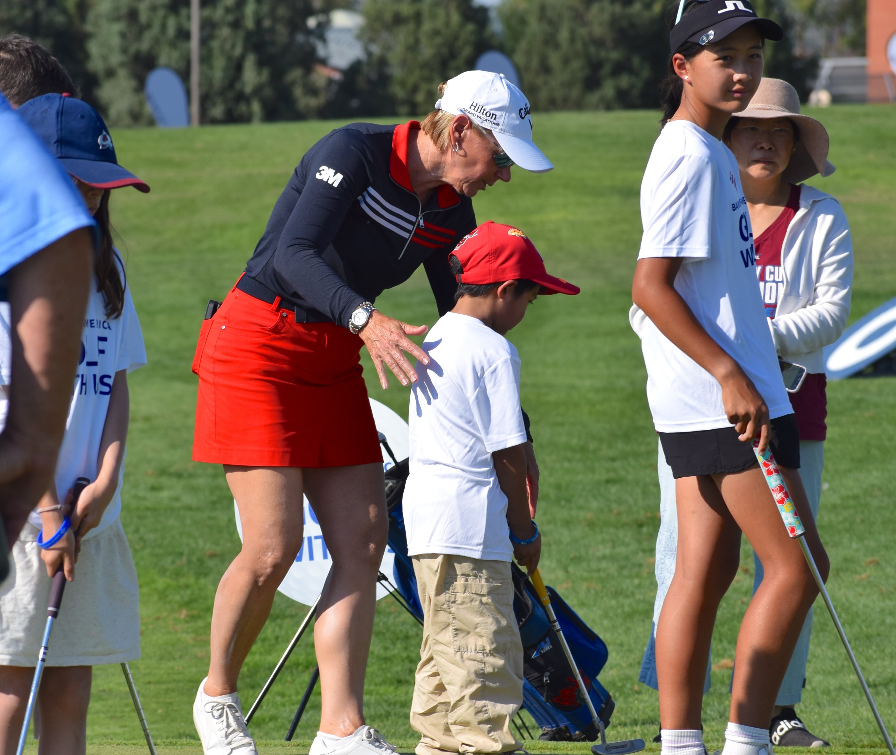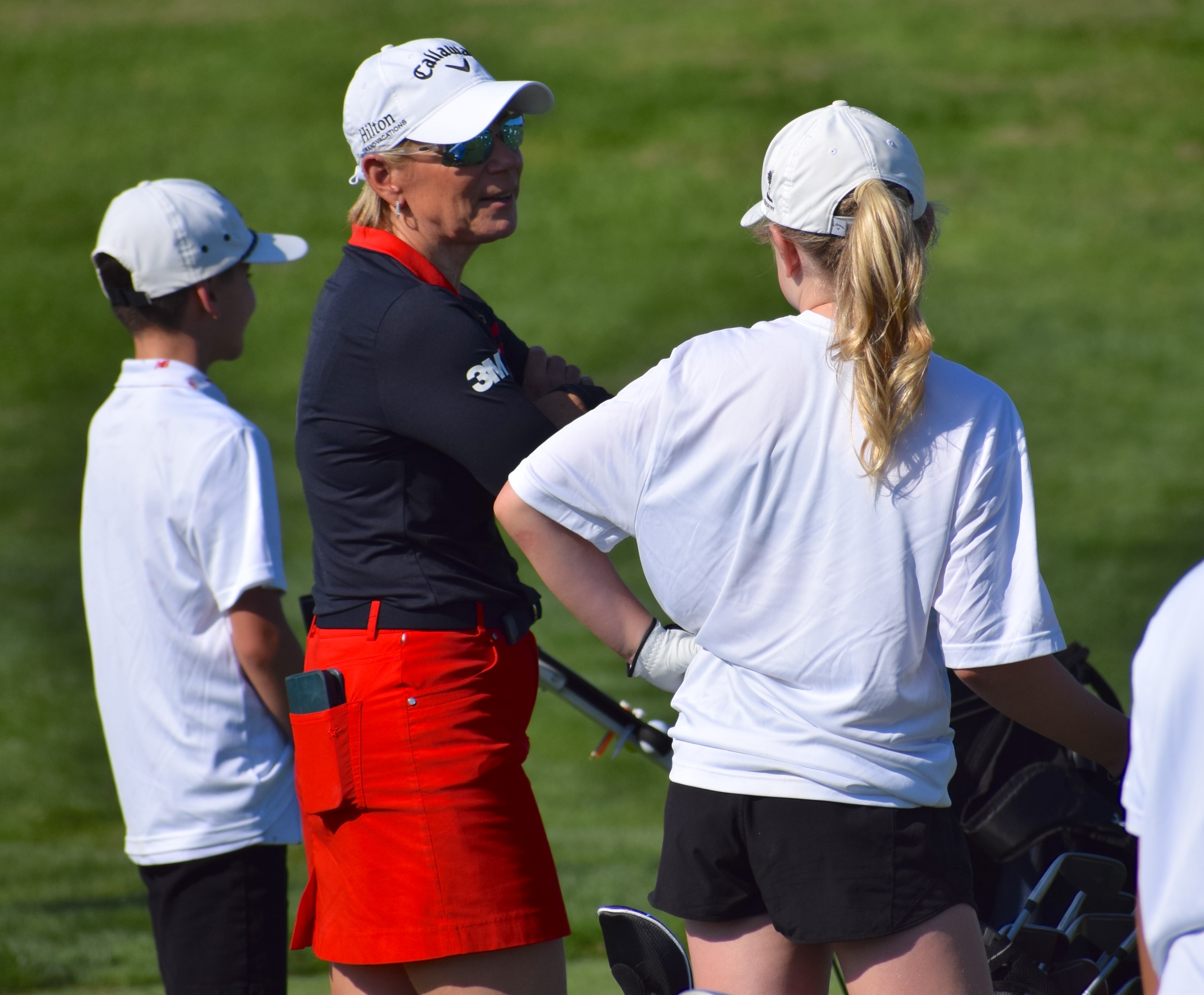 Sorenstam speaks with one of the girls attending the clinic.