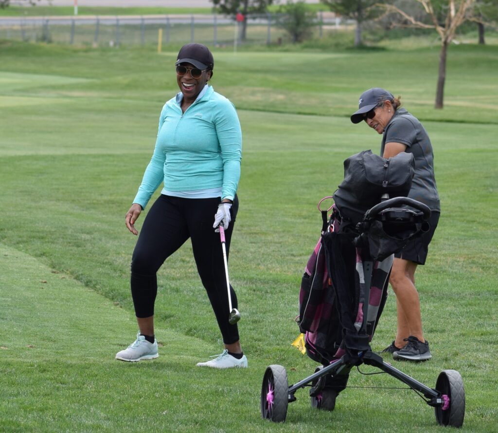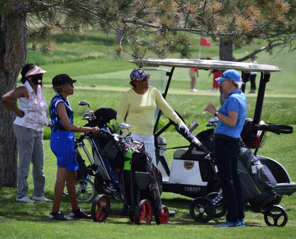 “After I had so much fun last year (at a CGA On-Course Clinic at Stoney Creek Golf Course in Arvada), I was going to try to do as many (as I could in 2020), but this corona thing came around,” said Valerie Love of Aurora, one of Saturday’s participants. “Then Sandria (Moses) — who is kind of our ringleader — told me it opened up at CommonGround, so we signed up. I wanted to do it; I really did.
