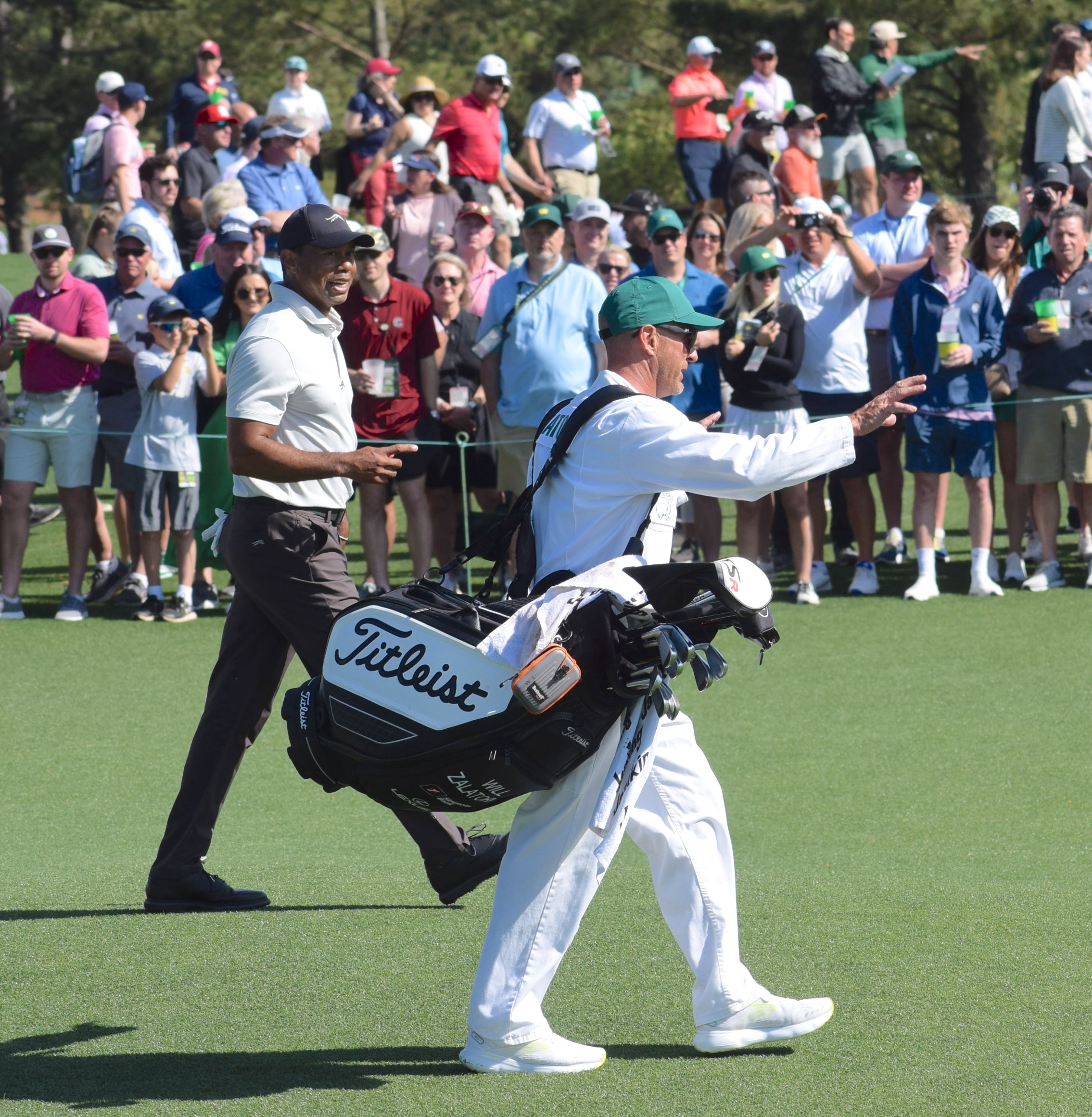 Five-time Masters champ Tiger Woods drew his usual large galleries on Monday.