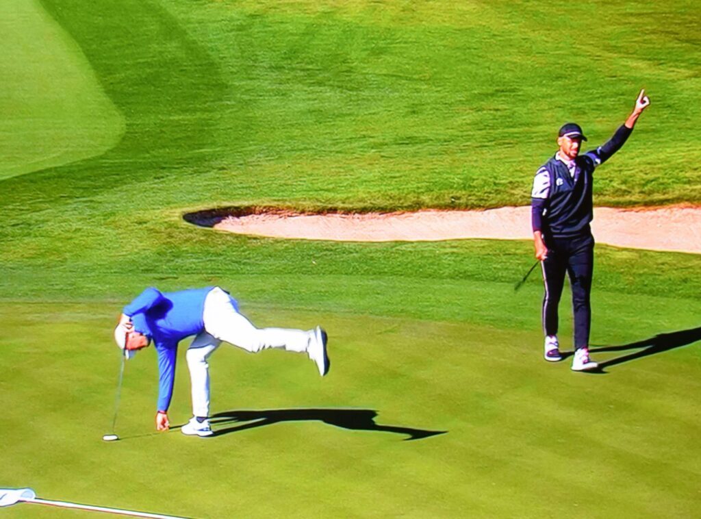 Added Barkley a hole latter, playfully requesting the powers that be at TNT get some alternate programming ready with the match possibly ending early: “Tell them to get some of those ‘Law and Order’ episodes ready in four or five holes.”