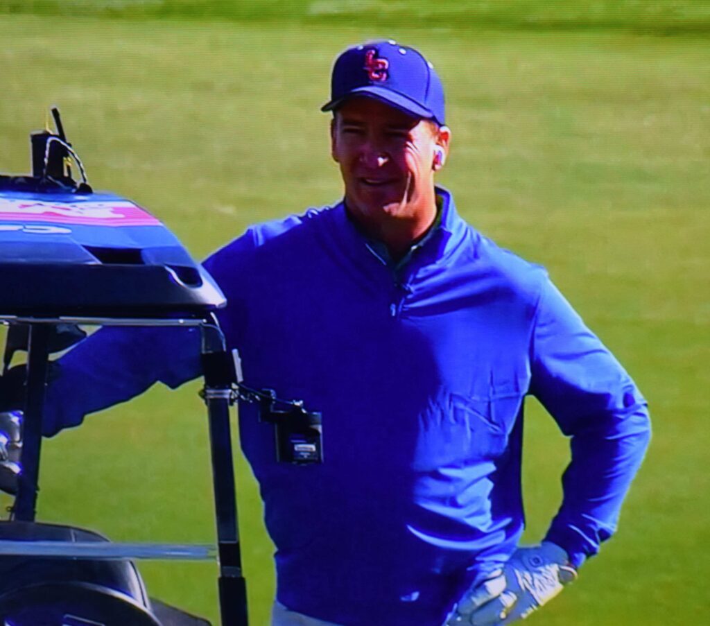 On the 11th hole, when he and Curry were 4 down, Manning called it a “28-nothing deficit”.