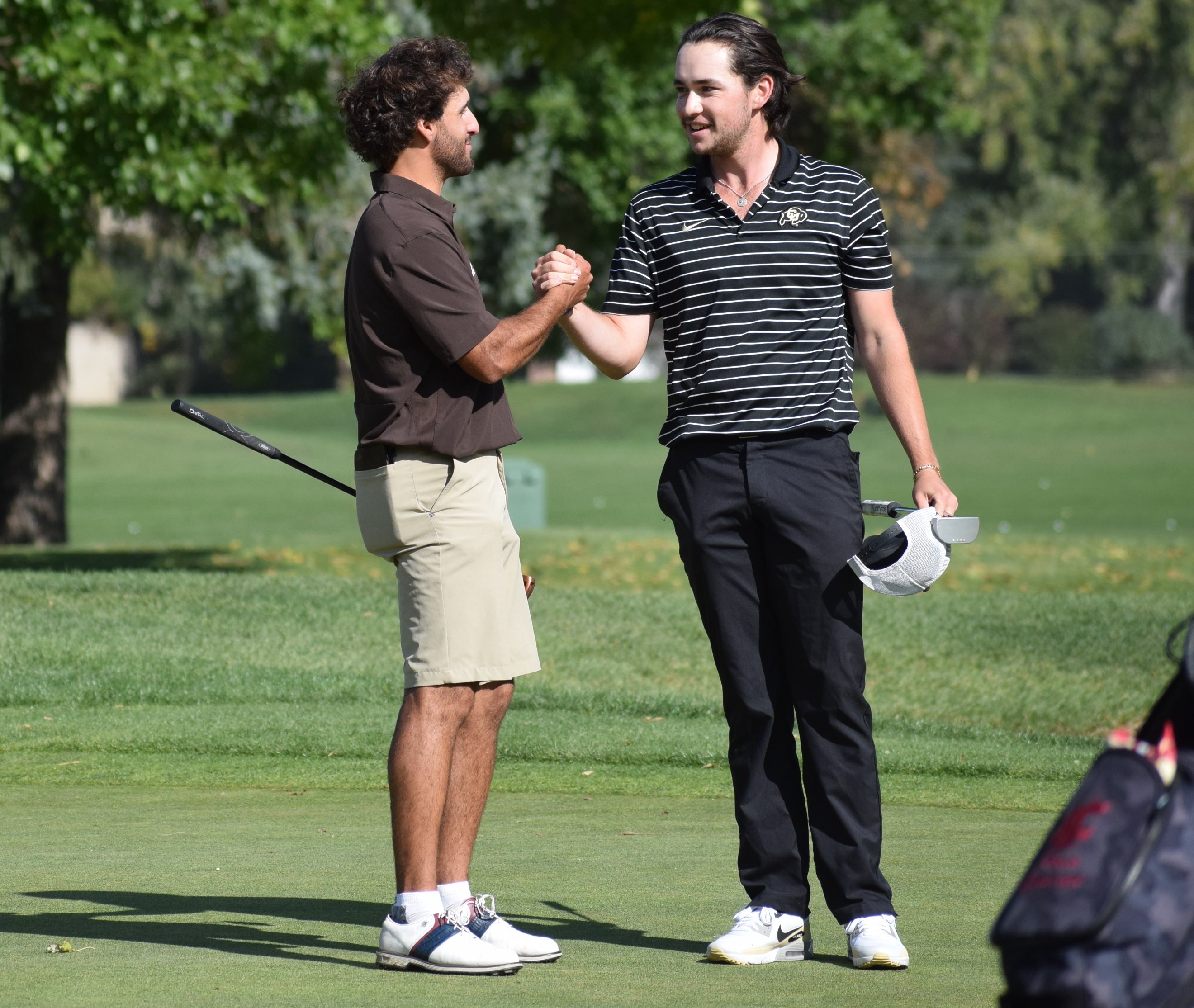 CU’s Justin Biwer (right) with Wyoming’s Patrick Azevedo at a tournament earlier this season.