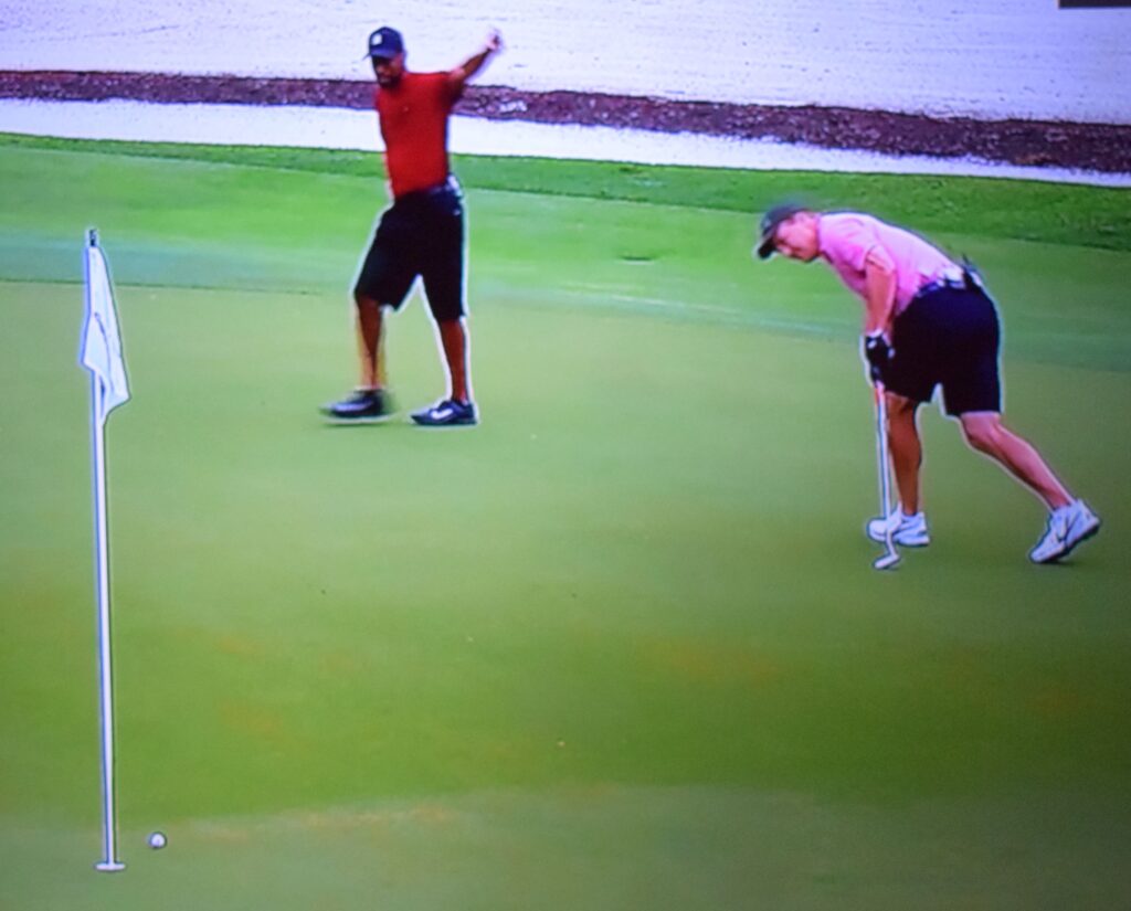 However, Manning came up big on the 183-yard 16th. After Brady and Mickelson hit very good shots on the par-3, Manning knocked his tee shot inside of 18 inches for a conceded birdie that ending up halving the hole and retaining his team’s lead.