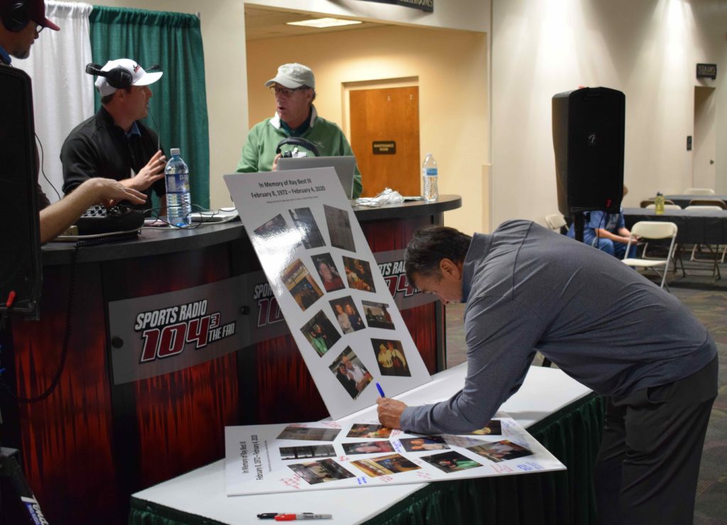 — The “In the Fairway” golf radio show on 104.3 The Fan, hosted by Jerry Walters and Mike Castorino, made its 2020 debut on Saturday by airing from the Expo. A tribute to former co-host “Cousin Ray” Best III, who passed away last week at age 47, was set up in front of the broadcast booth, with numerous listeners sharing their thoughts regarding Best on poster boards which featured pictures of the former Colorado junior champion and PGA professional. Those tributes will be passed along to Best’s family.